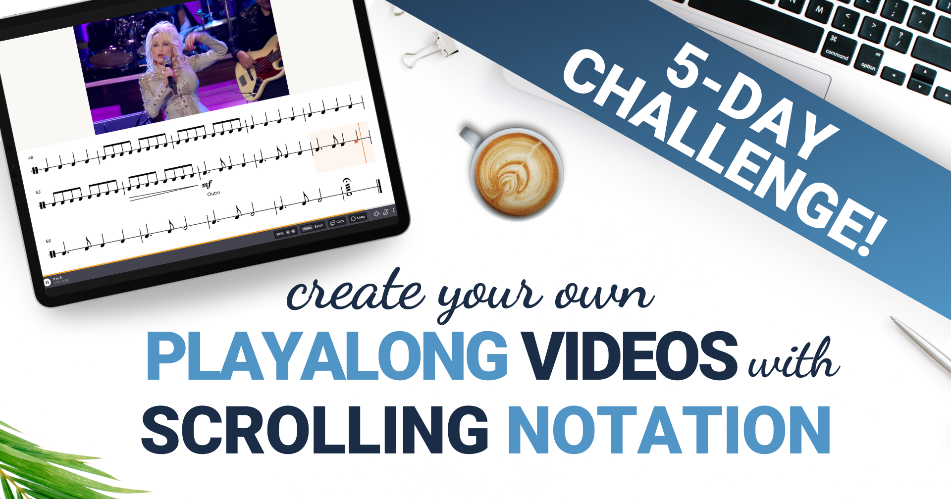 Each day you’ll have a bite-sized task to complete and by the end of the week you’ll have created a complete playalong video with scrolling notation (and some of you may choose to create more than one!). You’ll be able to choose your level of involvement: score and video materials will be provided for those that simply want to learn the “mechanics” of setting up the playalong and synchronizing the score with the video, but if you want to create your score and video components from scratch you can do that too!